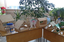"Кышын кошлар" проекты кысаларында мәктәп укучылары әтиләре белән җимлекләр, ә балалар бакчасында тәрбияләнүчеләр сыерчык оялары ясады.