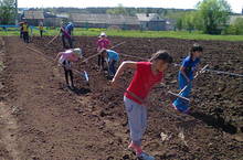 Укучылар белән бергәләп бакчабызда түтәлләр ясадык.