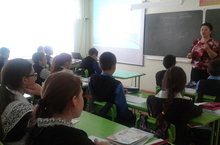 4 нче сыйныф җитәкчесеГайсина Раушания Гайфутдиновна ата -аналарга яңа укыту алымнарын күрсәтә.