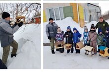 Наш детский сад посетили инспекторы природного заказника "Балтасинский".Они рассказали о зимующих птицах и вместе с детьми повесили кормушки.