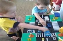 Мальчики младшей группы стараются подражать своим папам и увлеченно играют в машинки, а воспитатель Наталья Вячеславовна знакомит и учит соблюдать правила дорожного движения.