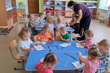 На этой неделе в детском саду "Неделя творчества". Мы с детьми младшей группы рисуем, разучиваем танцы.