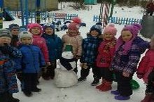 На участке старшей группы самый ранний гость - снеговик!