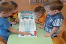 Мальчики старшей группы осваивают новую игру "Кёрлинг".