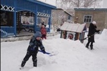 Мы с ребятами снег сгребали,