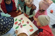 С детьми младшей группы провели беседу о витаминах, которые растут в огороде и в саду, сделали аппликацию "Наш огород"./ Кечкенәләр төркеме балалары белән бакчада үсүче витаминнар турында әңгәмә үткәрдек, "Безнең бакча" апликациясе ясадык./ Покчи группаысь пиналъёсын бакча-емышъёс сярысь вераськон ортчиз но "Милям бакчамы" темая киуж лэсьтӥзы.