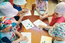 День искусства и живописи. Нетрадиционное рисование на пищевой плёнке./ Традицион булмаган техника ярдәмендә уртанчы-зурлар төркеме балалары белән рәсем ясау./ Искусстволы но живописьлы сӥзем нунал. Пищевой плёнка вылын суредаськон.