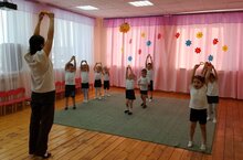 Утренняя гимнастика с погремушками в средней группе.