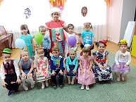 Клоун Ириска поздравила сегодня осенних именинников в младше/средней группе/Балалар бик күңелле итеп уйнадылар, шаярдылар.