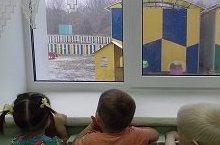 Малыши наблюдают за первым снегопадом в этом году/Нәниләр беренче кар явуын күзәтәләр