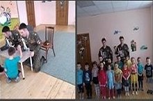 В предверии празднования Дня защитника Отечества в старшую группу пришли гости-российские солдаты, это бывшие наши воспитанники и старшие братья Павлика- Параманов Владислав и Валерий. Они рассказали ребятам, как они служили в ракетных войсках, о том, что солдат должен быть мужественным, отважным, смелым, храбрым. В ходе беседы дети узнали о солдатских буднях, форме,боевом братстве, отваге, чести.Дети с удовольствием позанимались с солдатами. Узнали много интересного: чем занимаются солдаты, за сколько минут должны одеваться и заправить кровать, чем в армии кормят и дают ли сладкое, сколько часов спит солдат, служат ли в армии девочки, как называется головной убор, что означают значки на груди....Восторгу не было предела!