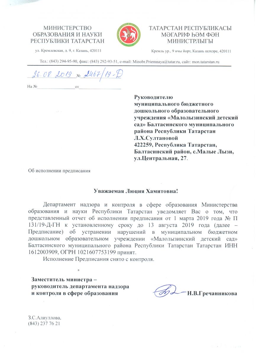 Отчет о результатах исполнения предписания в департамент надзора и контроля в сфере образования.pdf