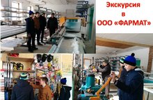 В целях профориентационной работы, а также изучения темы «Предпринимательство. Малый бизнес» на уроке обществознания (учитель Медведева Н.Н) учащиеся 10 класса совершили экскурсию в ООО «ФАРМАТ» и познакомились с производством изделий из пластика (окна, двери, входные группы).