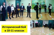 В рамках недели истории и обществознания Медведева Н.Н. провела в 10-11 классах исторический бой. Учащиеся путешествовали по этапам, выполняя задания из истории России. Первым к финишу пришел ученик 10 класса Мухин Антон. 2 место занял ученик 11 класса Шадров Евгений. 3 место занял ученик 10 класса Григорьев Роман.