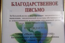 Церемония торжественного закрытия Года экологии и особо охраняемых природных территорий «Пусть будет мир прекрасен» была проведена на базе МБОУ «Нуринерская СОШ» при поддержке Министерства Экологии и природных ресурсов РТ с целью повышения экологической культуры обучающихся, формирование устойчивых навыков экологически ответственного поведения, бережного отношения к природе. По результатам мероприятий, которые были проведены в течении года, под руководством Егоровой В.В, наша школа стала одной из самых активных в районе и награждена благодарственным письмом министерства экологии и природных ресурсов РТ.