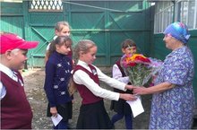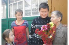 Поздравление на дому с Днем пожилого человека ветерана труда Савельеву З.А. наследниками 6 класса 01.10.2016
