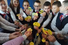 19.11.30г. Акция "День подарков. Подари радость другому". Учащиеся 6 класса изготовили своими руками смайлики и подарили их одноклассникам и учителям.