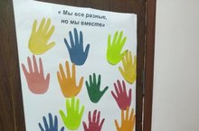 16 ноября в школе прошла акция "Мы все разные, но мы вместе". Одним из символов толерантности являются разноцветные ладошки. Ладошка - это детский символ мира, дружбы, доброты и открытости. В течение дня школьники изготовляли ладошку из разноцветной бумаги и приклеивали свой отпечаток ладошки на большом листе.