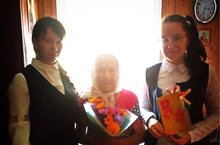 Учащиеся 9 класса поздравили пенсионерку-старожила д.Б. Лызи Иванову М.и пожилую жительницу д.Нижняя Ушма Волкову М. Д