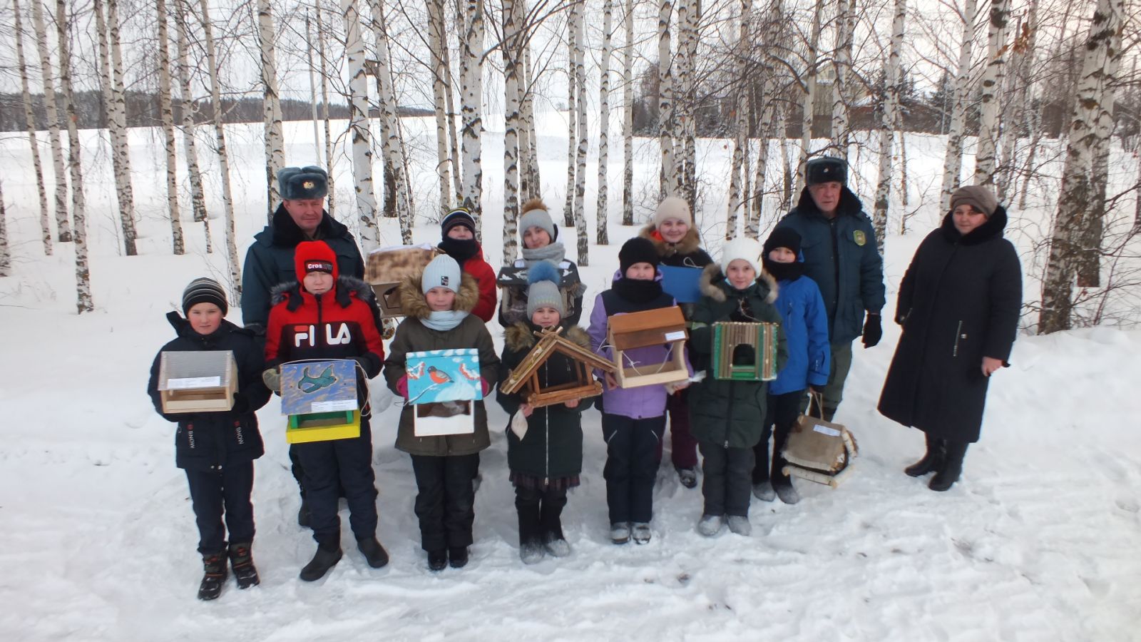 Опубликовано: 22.01.2021Природоохранная акция "Кормушка". Учащиеся 5Б класса совместно с инспекторами заказника "Балтасинский" развесили кормушки в березовой лесопосадке.