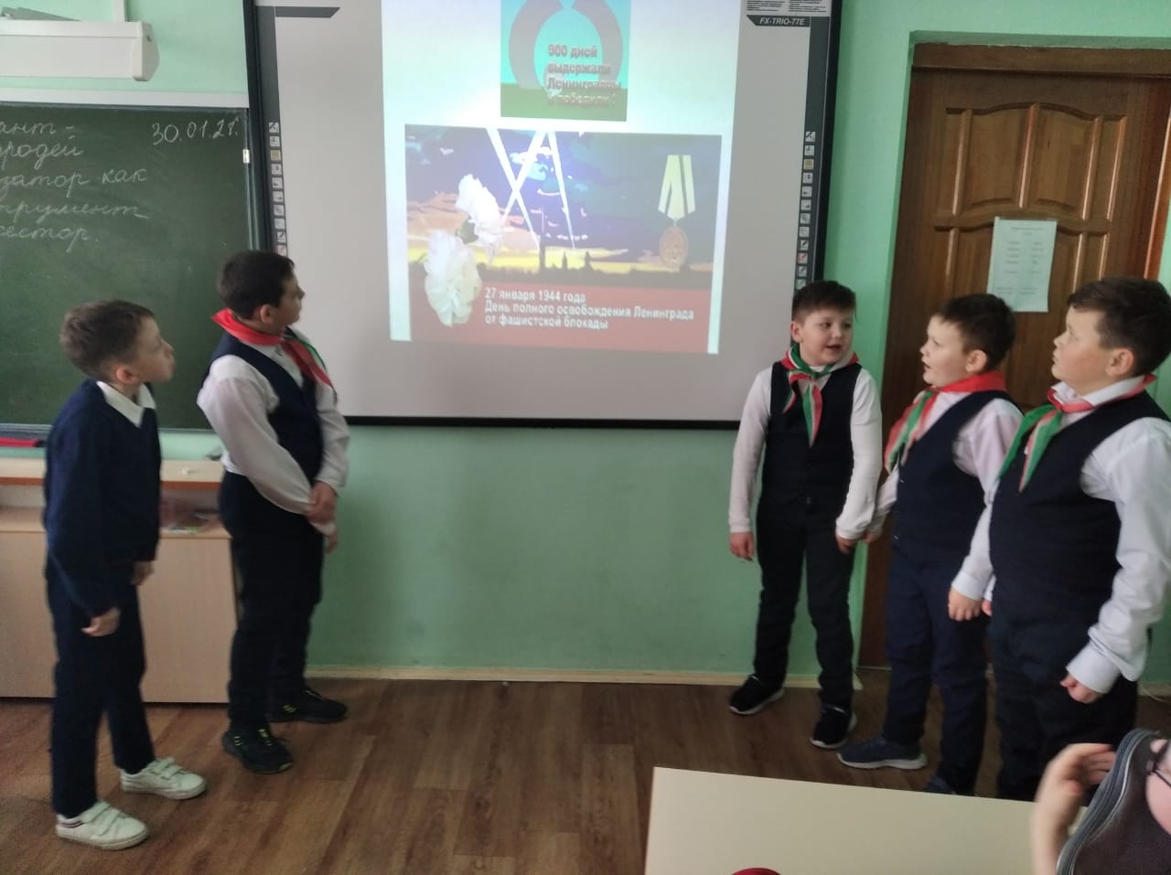Опубликовано: 01.02.2021В 4 классе прошел классный час на тему: Блокада Ленинграда.Учащиеся пополнили знания о блокаде Ленинграда,познакомились как жили люди зимой 1942 года во время блокады Ленинграда,какое мужество совершили люди и дети этой войны.
