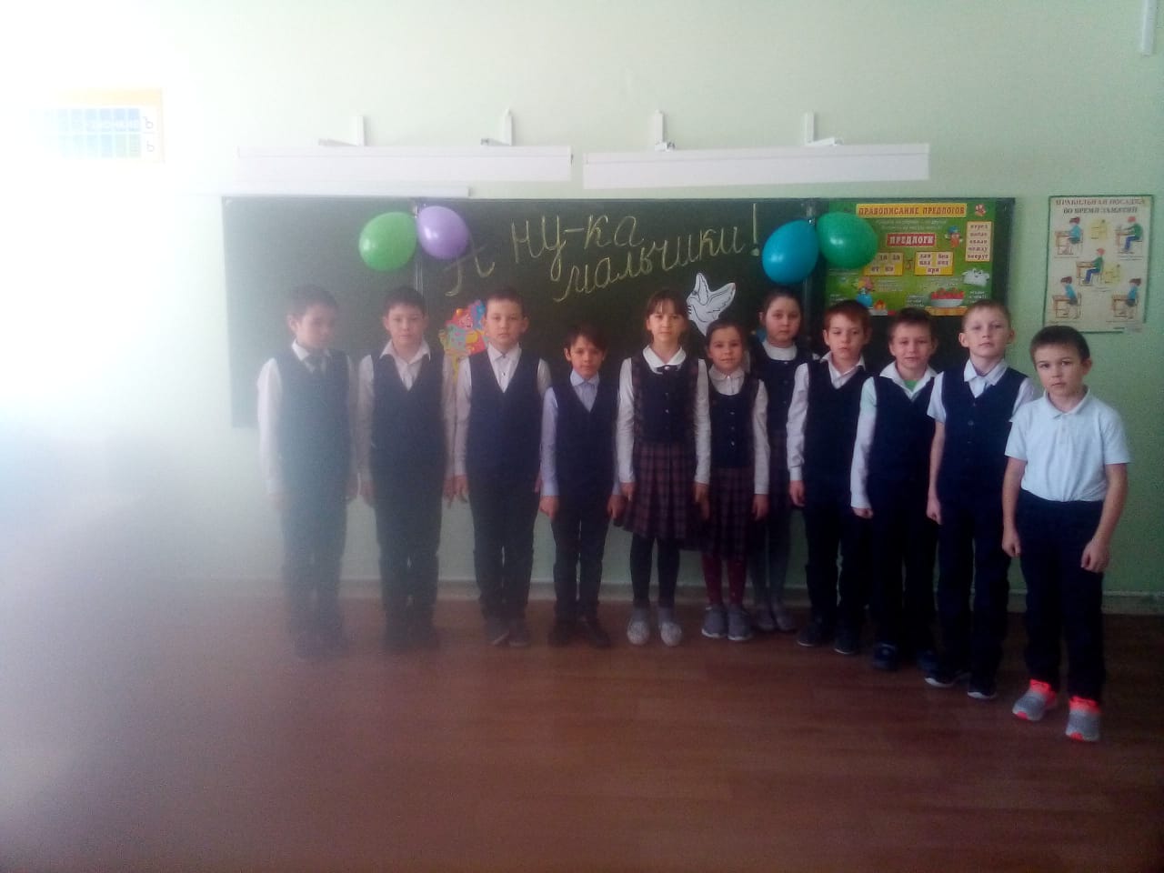 Опубликовано: 20.02.202119 февраля в 3 классе провели "А ну-ка мальчики!"Ребята соревновались между командами"Лётчики" и"Танкисты".Девочки приготовили веселые конкурсы,игры, поздравили мальчиков с Днём Защитников Отечества.