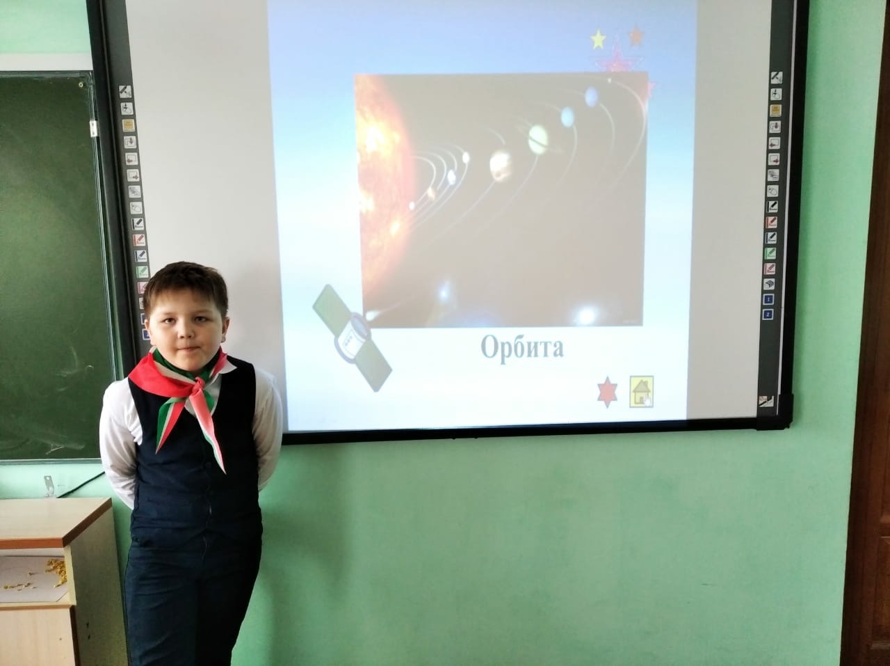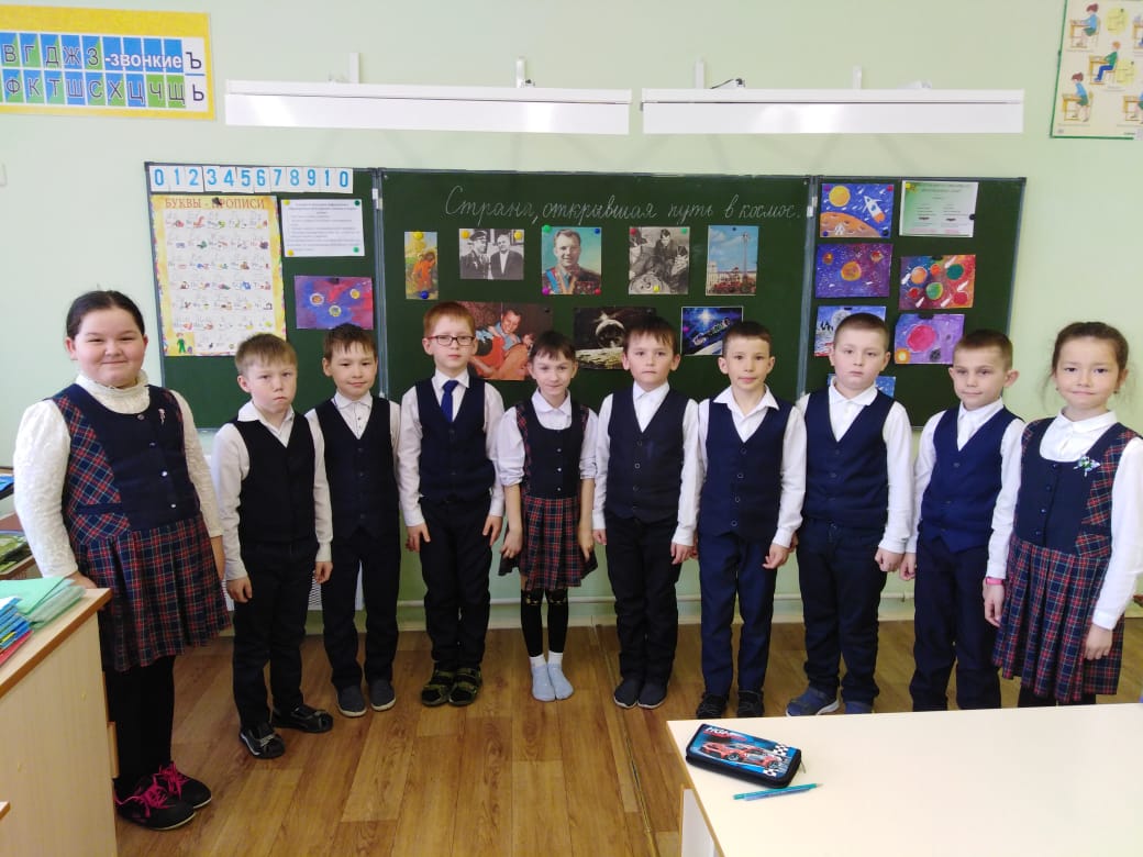 Опубликовано: 12.04.202110 апреля в 4 классе прошел классный час посвященный дню космонавтики на тему Космос,провели с учащимися космическую викторину,ответили на вопросы викторины.Ученики узнали о полете первых животных собак и познакомились со многими приборами, которые готовят космонавтов к полету. Также рисовали рисунки на тему "Космос".