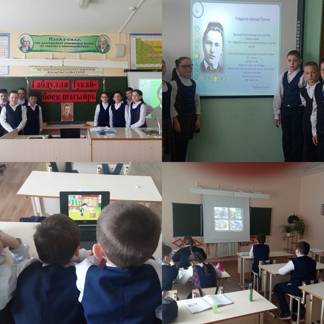 Опубликовано: 27.04.2021Туган тел дәресләрендә Габдулла Тукайның иҗаты, тормыш юлы искә алынды. Шигырьләре, әкиятләре укылды.