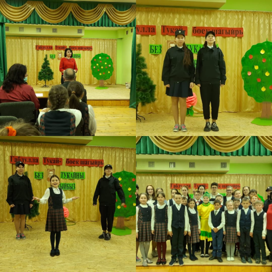 Опубликовано: 27.04.2021Бүген мәктәбебездә ФОРПОСТ белән берлектә "Габдулла Тукай исемендәге шигырь конкурсы" булып узды. Г. Тукай шигырьләре, татар балалар шагыйрьләренең шигырьләрен яттан сөйләделәр, җырларын башкардылар. Бәйрәм кичәсе "Туган тел" җыры белән тәмамланды.