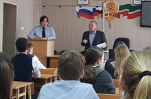 Ст. УУП майор полиции Тухватуллин Р. Р., муниципальный служащий Галимзянова А. Б. под руководством ЗДВР Сибгатуллиной Г.Н., провели беседу и проинструктировали учащихся школы с основными правилами Техники безопасности во время учёбы, а также в период осенних каникул по предотвращению правонарушений.