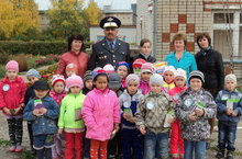 Балаларның юлларда иминлекләрен саклау өчен"Куркынычсызлык айлыгы"нда бакчабызда төрле чаралар үткәрелде. Бүген бакчабызның зурлар һәм мәктәпкә әзерлек төркеме балалары ЮХИДИ хезмәткәрләре Шафигуллин Ф.Т.һәм Хадиева Л.Х.лар белән очраштылар.Балалар ике командага бүленеп юлда йөрү кагыйдәләрен белү буенча көч сынашып ярыштылар.ЮХИДИ хезмәткәрләре балаларга файдалы киңәшләрен бирделәр .Бу очрашу балалар өчен бик файдалы булды.