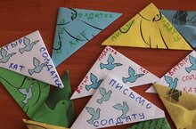 Лагерьда йөрүче укучылар бик теләп "Солдатка хат" акциясендә катнаштылар.