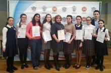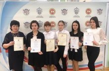 11 сыйныф укучысы Галипова Илүзә ( сулдан икенче) татар мәктәпләре арасында булган татар әдәбияты республика олимпиадасында призлы урынга лаек булды. Укытучысы Җәләева Г.Г.
