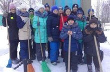 Учащиеся 5 го класса очистили памятник от снега в центре с.Норма.