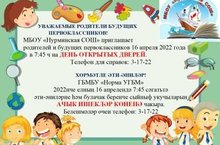 Уважаемые родители! МБОУ "Нурминская СОШ" 16 апреля 2022 года приглашает родителей и будущих первоклассников на День открытых дверей. Телефон для справок: 3-15-22