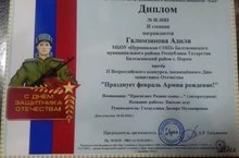 Обучающаяся 2б класса Галимзянова Аделя награждена дипломами1-2 степени Всероссийского конкурса ”Празднуем Победу”. Руководитель Гатауллина Д.М.