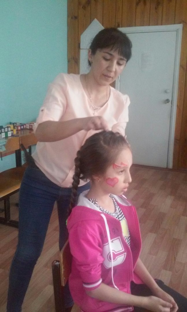 В пришкольном лагере «Ромашка» в рамках профориентационной деятельности был проведен мастер – класс парикмахером Сатаровой Л.Х. Она научила детей красиво и модно плести косы.