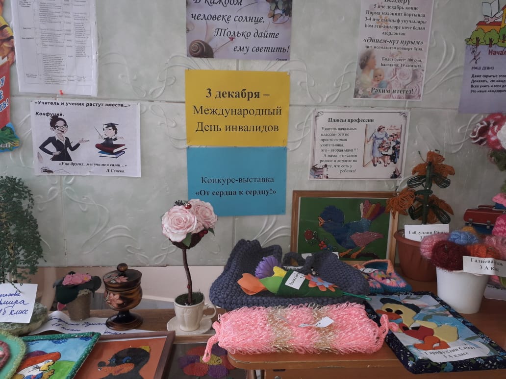 Опубликовано: 05.12.20183нче декабрь көнне башлангычлар атналыгы кысаларында «Йөрәктән йөрәккә” дип исемләнгән күргәзмә оештырылды. Башлангыч сыйныф укучылары мөмкинлекләре чикләнгән кешеләр өчен үз куллары белән бүләкләр әзерләделәр.