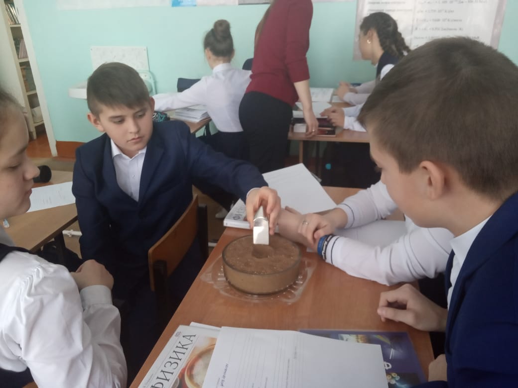 Физика укытучысы Нургалиева Р.Н. 7 А классында "Басым" темасына ачык дәрес тәкъдим итте.