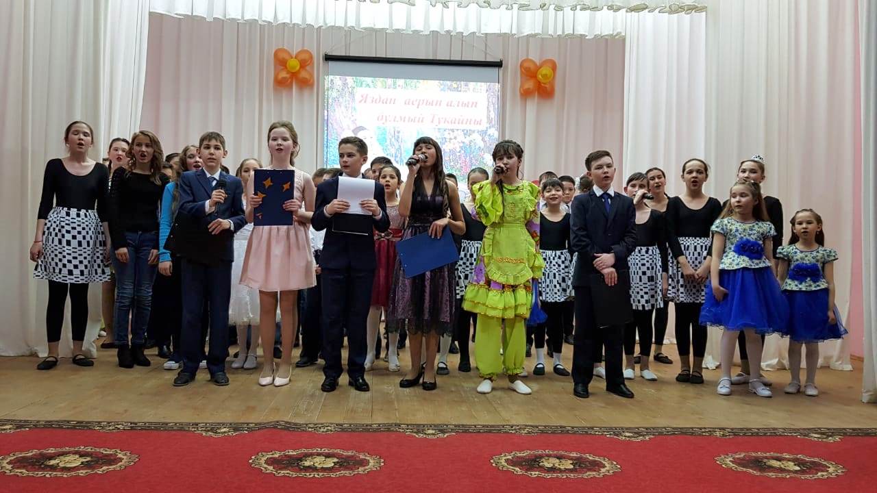 Опубликовано: 23.04.2019Концертта 5-6 нчы сыйныф укучылары, аларның әти-әниләре, әби-бабайлары, эне-сеңелләре, яз, ана, яңарыш, мәхәббәт, Тукай темаларын яктыртып, бик күп матур җырлар, биюләр, шигырьләр башкардылар. Тамашачылар бу кичәдән олы бер канәгатьләнү белән таралыштылар. Афәрин, укучылар.