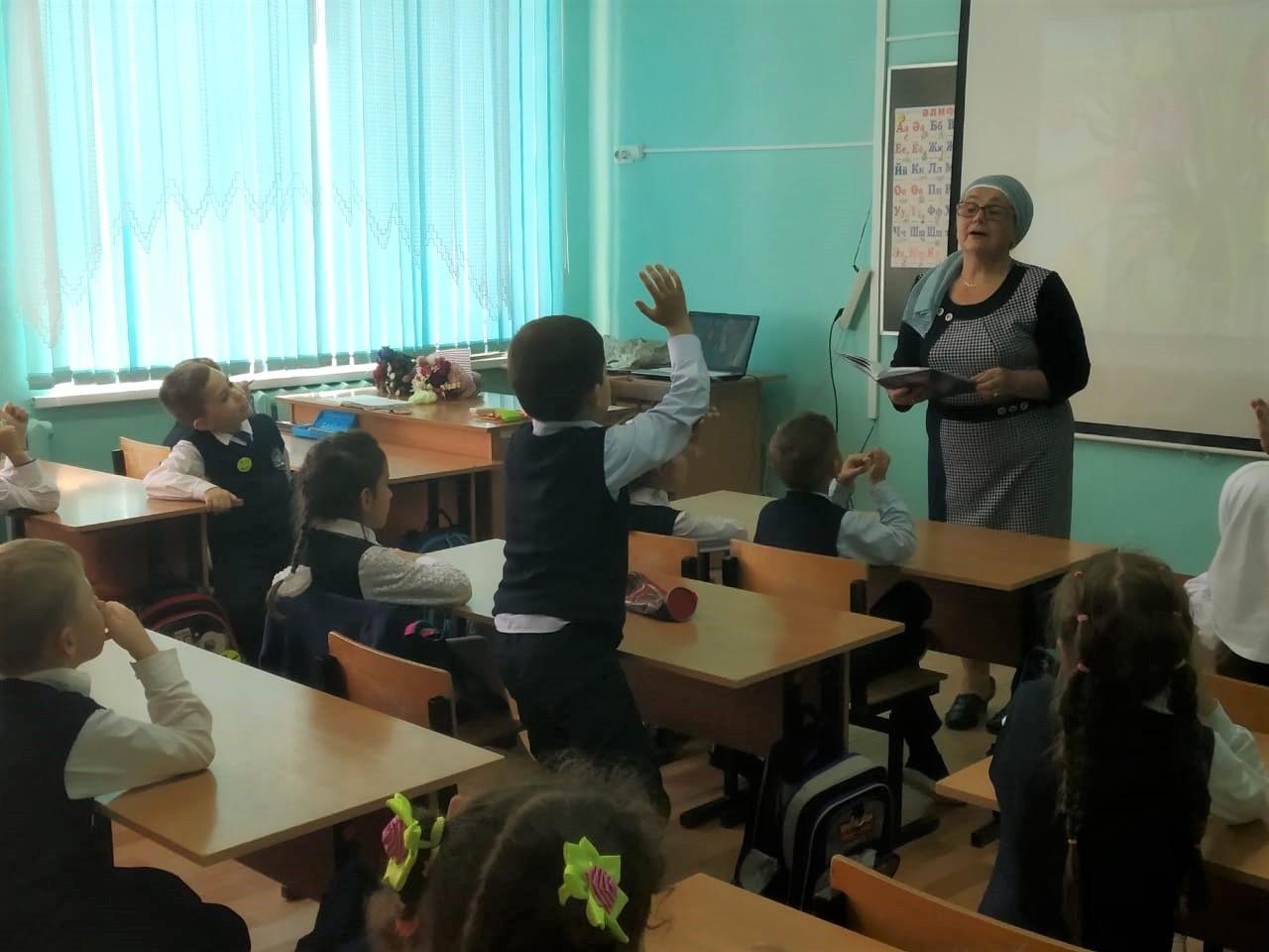 | У нас учатся: | 406 учащихся/Бездә 406 укучы укый |