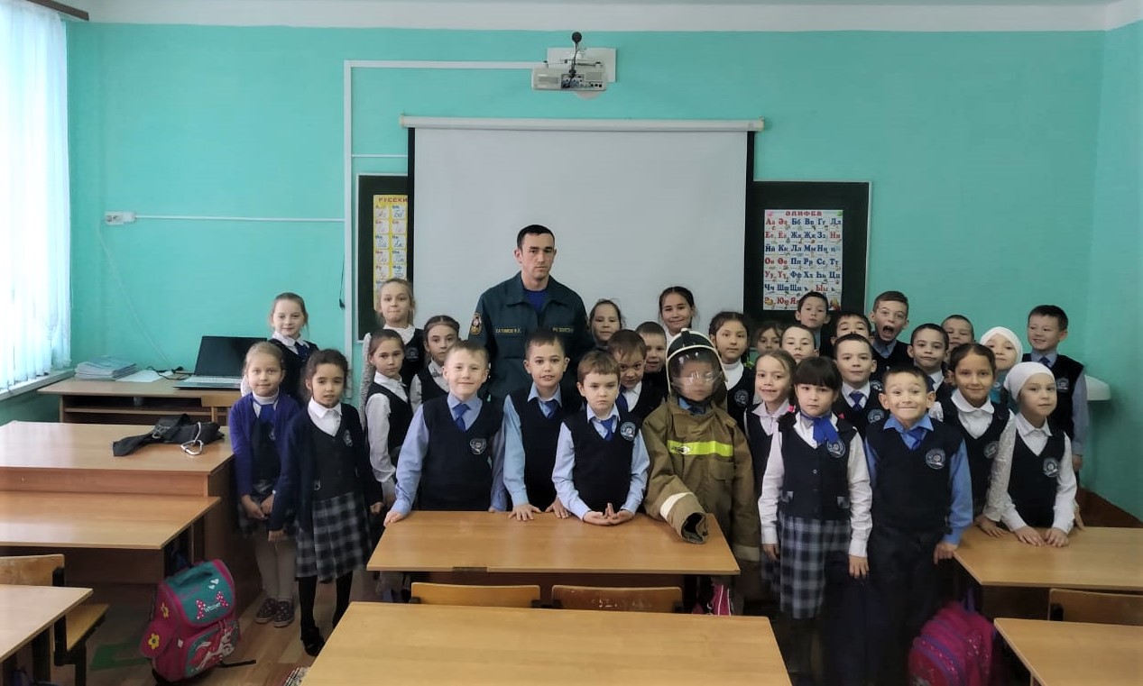 3 декабрьдә пожарга каршы хезмәт хезмәткәре Ф. Х. Хәкимов 1нче сыйныф укучыларына уттан зыян күрү очракларын кисәтү әңгәмәсе үткәрде.