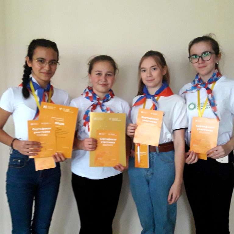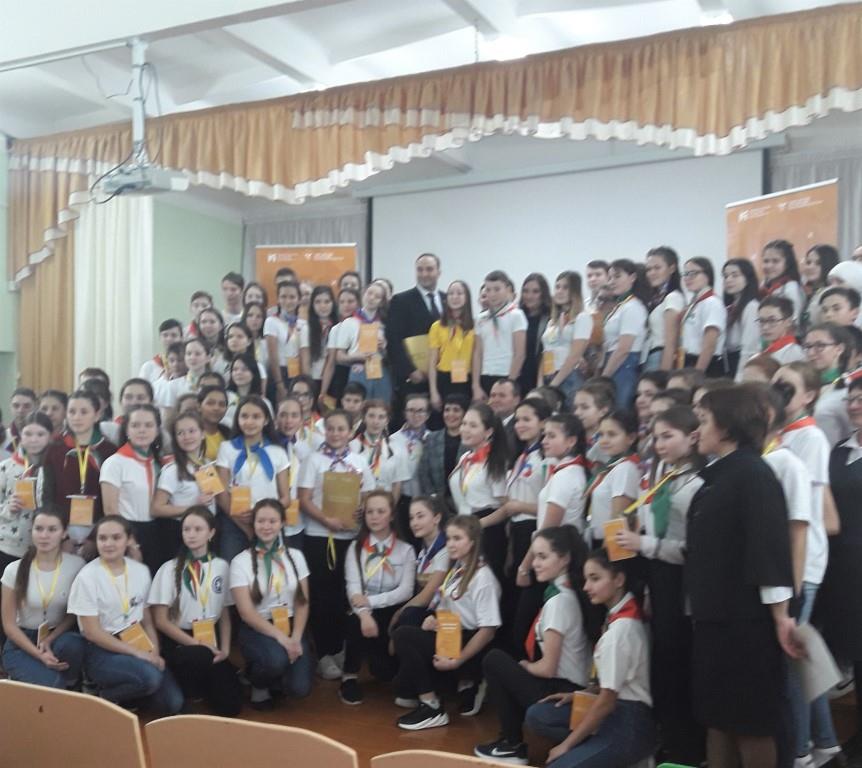 Опубликовано: 10.12.2019Безнең мәктәп укучылары Шарифуллина Фирюза, Гатауллина Аделя, Шайхутдинова Алсу, Җәләева Зәринә яшь гражданнар форумы эшендә катнаштылар. Гатауллина Адиля, Җәләева Заринә актив эшчәнлекләре өчен мактау кагәзе белән бүләкләнделәр.