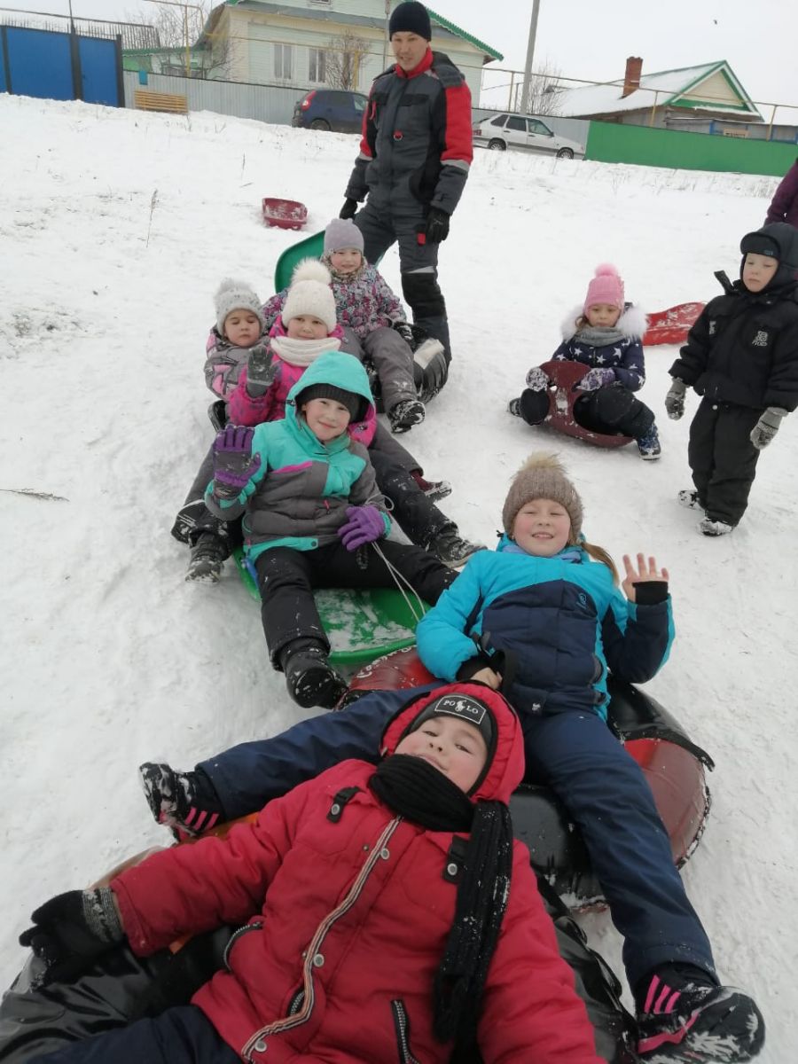 Каникулы продолжаются. Совместный зимний отдых с родителями. Обучающиеся и их родители, классные руководители провели праздник катания с горки.