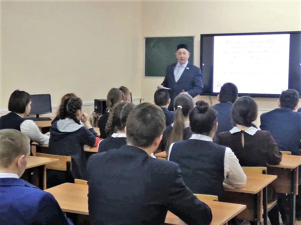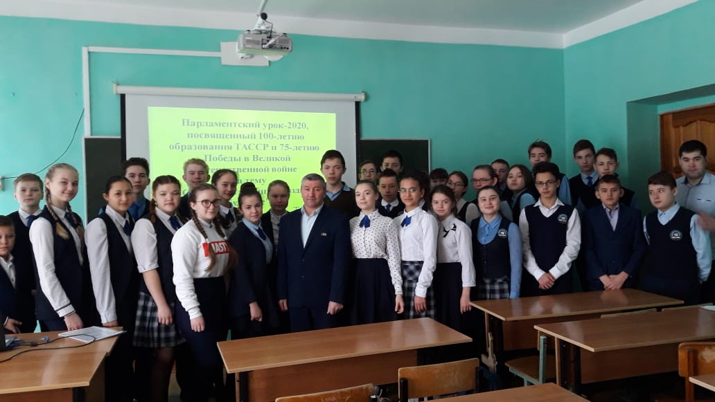 Опубликовано: 18.02.2020Парламент дәресләрен Балтач район Советы депутаты Исрафилов Сәйдәш Мәгъсүм улы, Норма җирлеге башлыгы Шарипжанов Радик Наил улы, Норма җирлеге башкарма комитеты җитәкчесе Мөбәрәкшин Илнар Илшат улы, тарих укытучылары Гибадуллин Рим Рәшит улы и Габделбарова Алсу Инзиннәт кызы үткәрделәр.