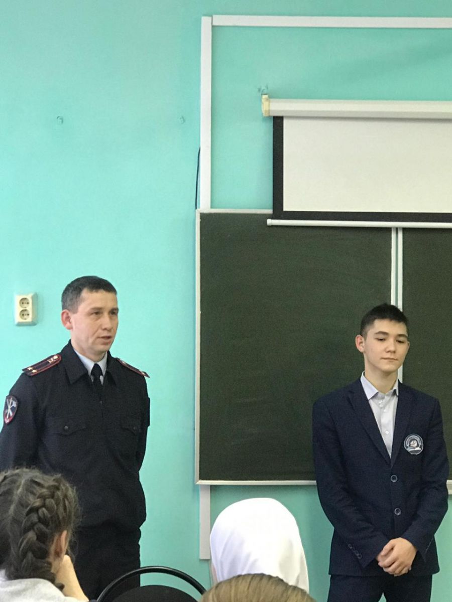 Опубликовано: 20.02.20208-9 сыйныф укучылары өчен Балтач районы буенча Россия Эчке эшләр бүлеге җитәкчесе ярдәмчесе Сибгатуллин А.З. белән очрашу үтте. Халимов Раил Эчке эшләр бүлеге үткәргән Спартакиада да актив катнашкан өчен Рәхмәт хаты белән бүләкләнде.