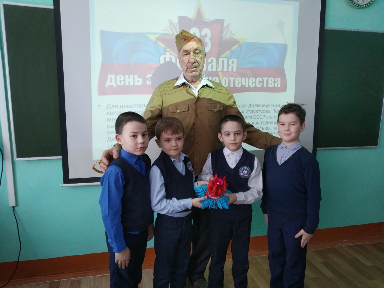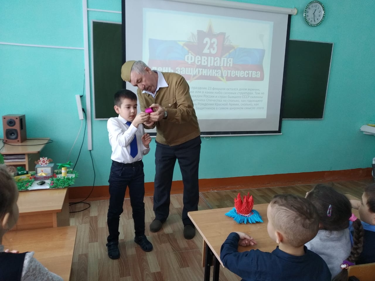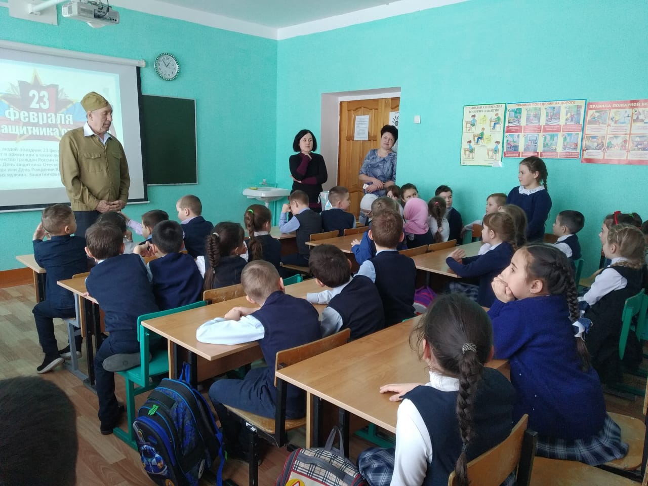 27 февраля в 1-2 классах был проведен классный час с участием Хасаншина Госман Гумеровича, посвященный ко Дню Защиты Отечества.