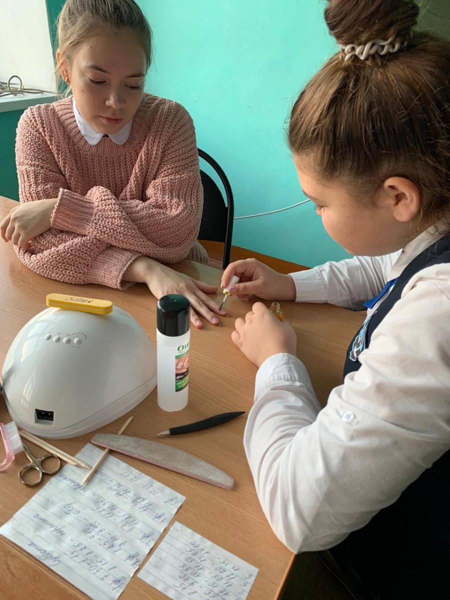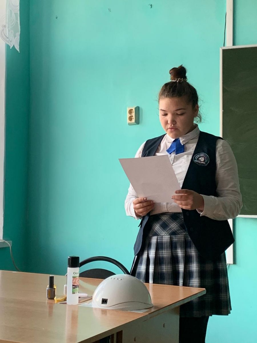 Опубликовано: 12.11.2020Часы профориентации в 9а классе. Моя будущая профессия – повар. Мастер –класс провела Галиуллина Айгуль. Профессия маникюра.. Мастер –класс показала Закирова Зиля.