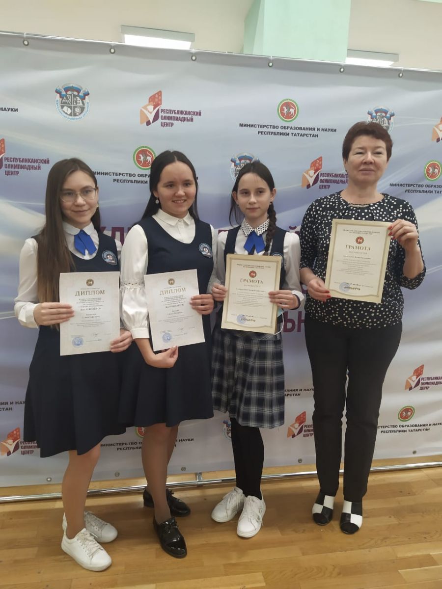 - татар мәктәпләренең рус телендә белем алучы сыйныф укучыларының татар әдәбияты олимпиадасында 10 сыйныфтан Камалова Голинә, 8б сыйныфыннан Шәйхетдинова Алисә һәм Гатауллина Лина .