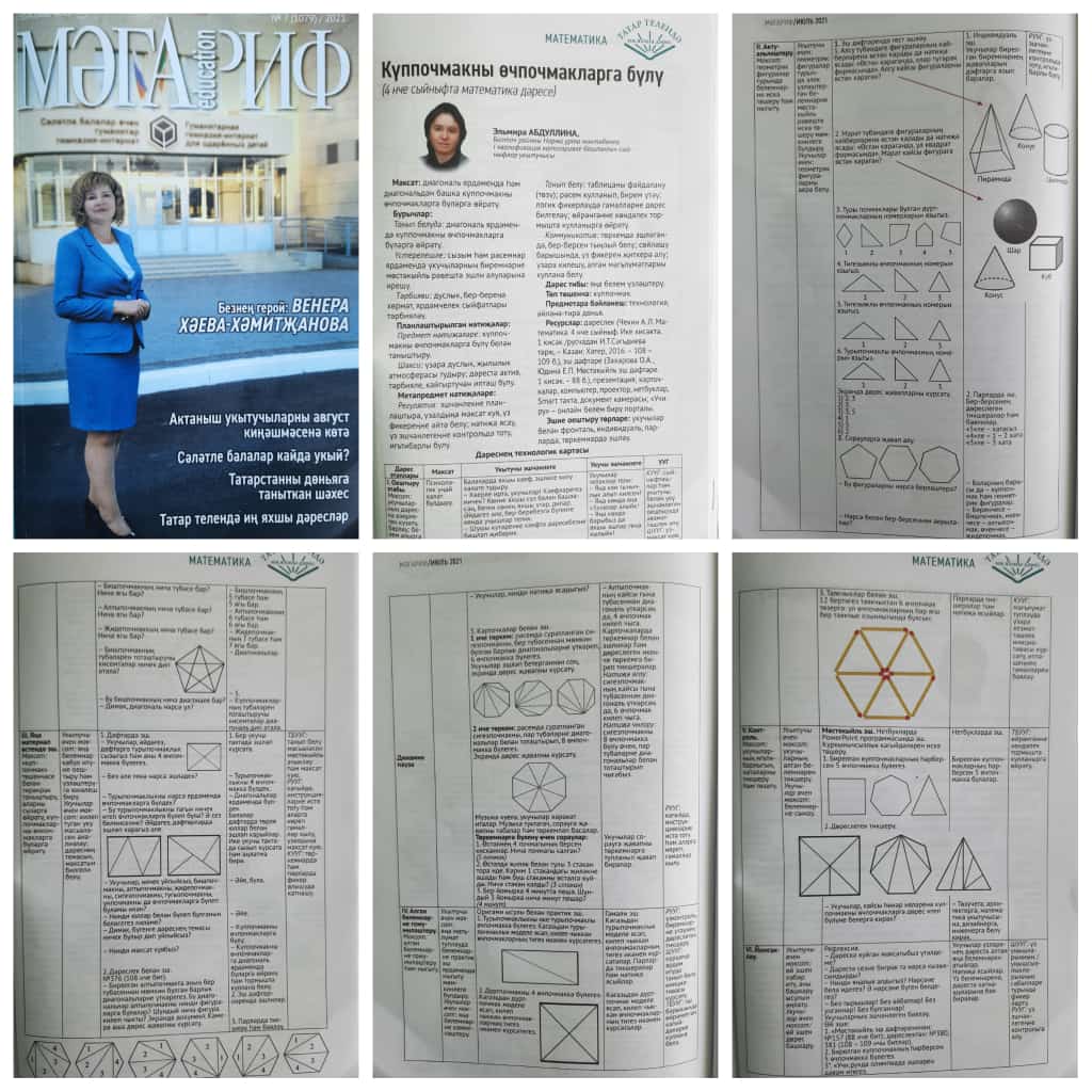 Опубликовано: 05.08.2021Разработка урока учителя начальных классов АбдуллинойЭльмиры Ильфаковны "Разбиение многоугольника на треугольники" стала победителем в номинации "Лучший урок математики" конкурса, проводимой журналом "Мәгариф".